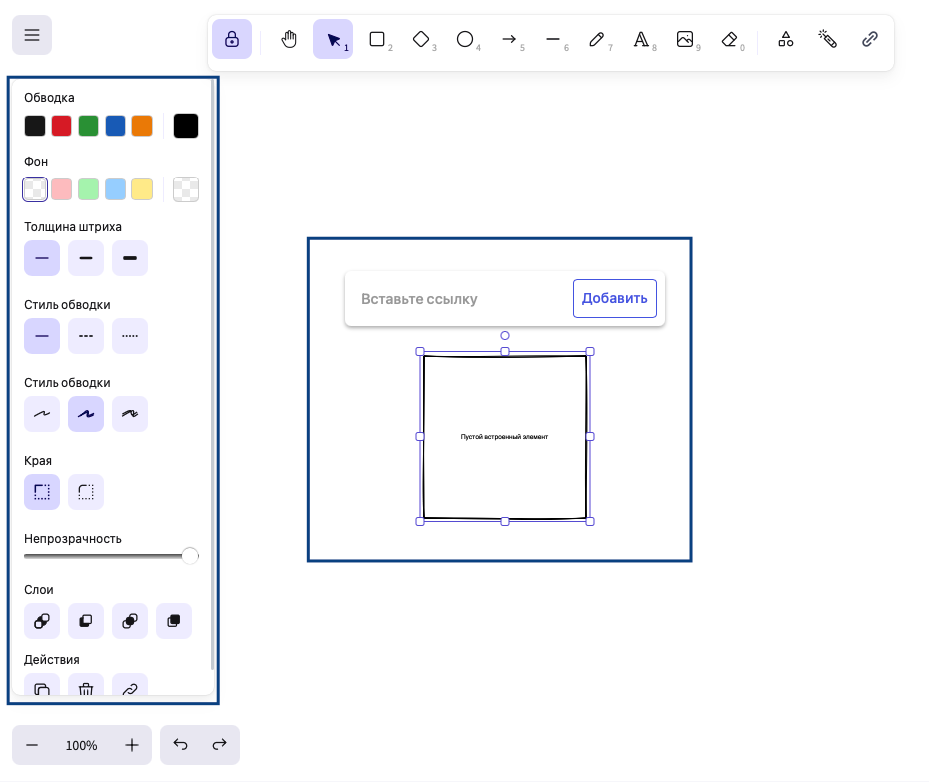По нажатию на данную кнопку сразу формируется элемент, а также открывается контекстное меню.