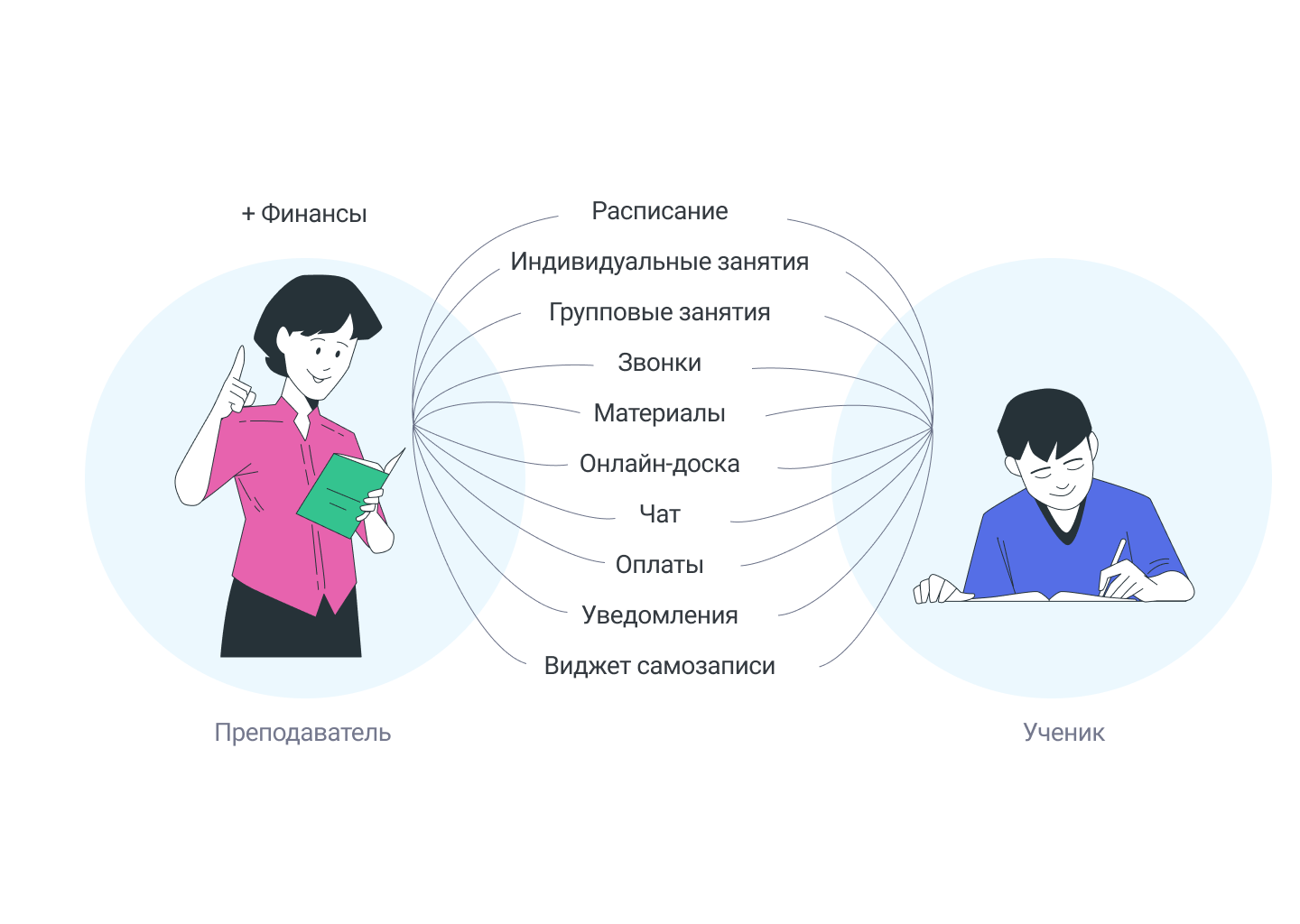 Отправьте ссылку ученику на регистрацию в Finch (с незарегистрированными пользователями не получится проводить звонки в онлайн-формате)
