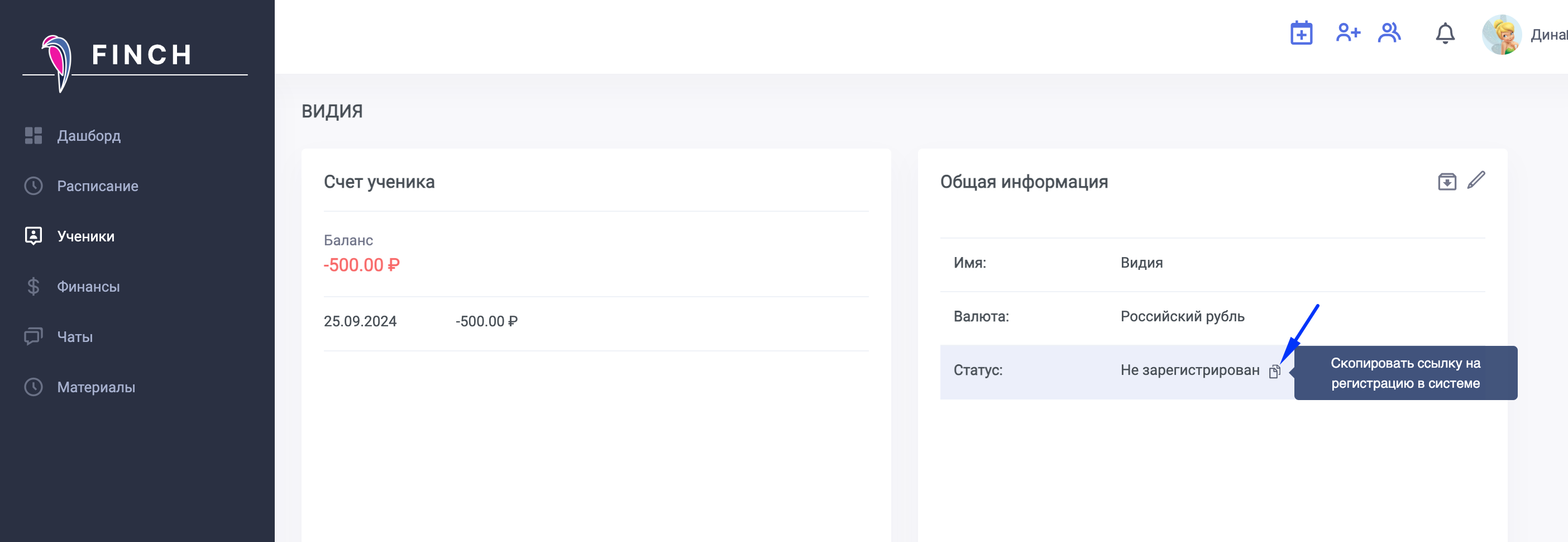 Регистрация ученика в Finch - это обязательное условие для проведения онлайн-занятий и переписки в чате.