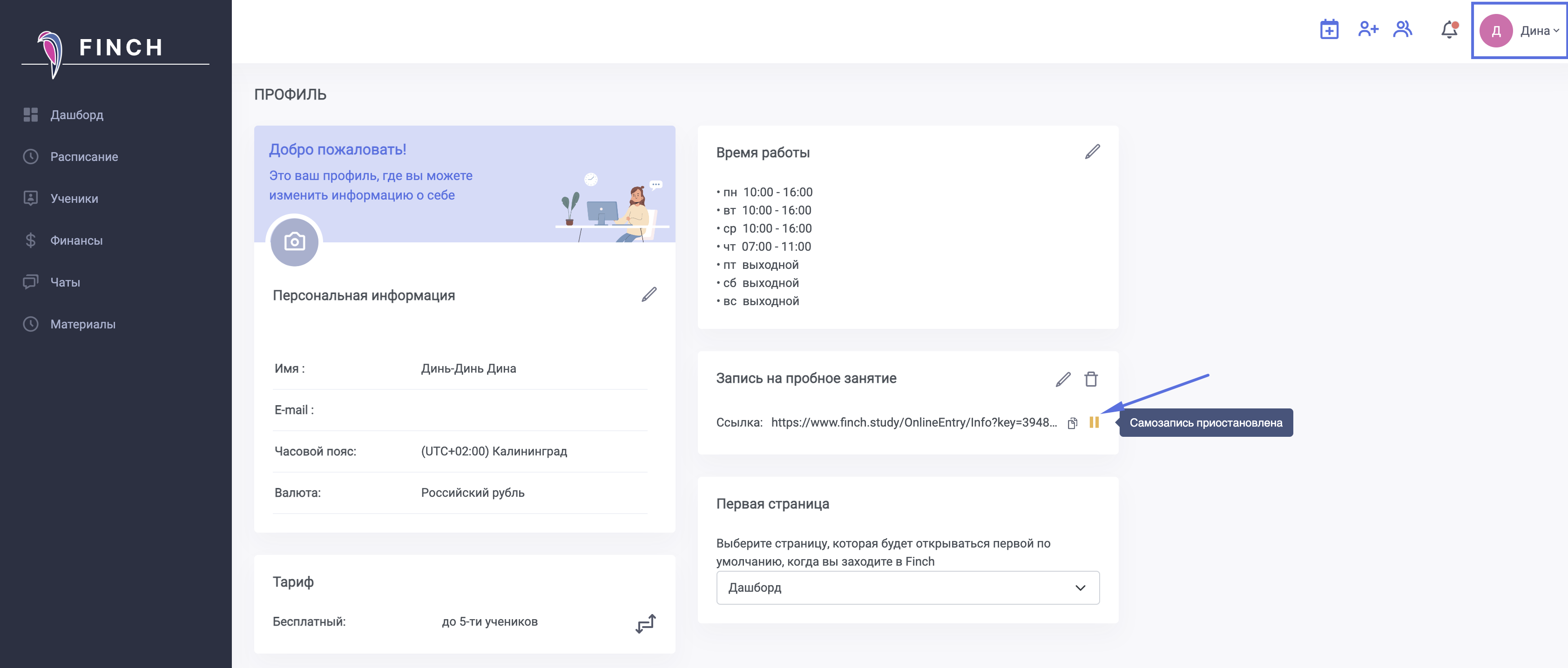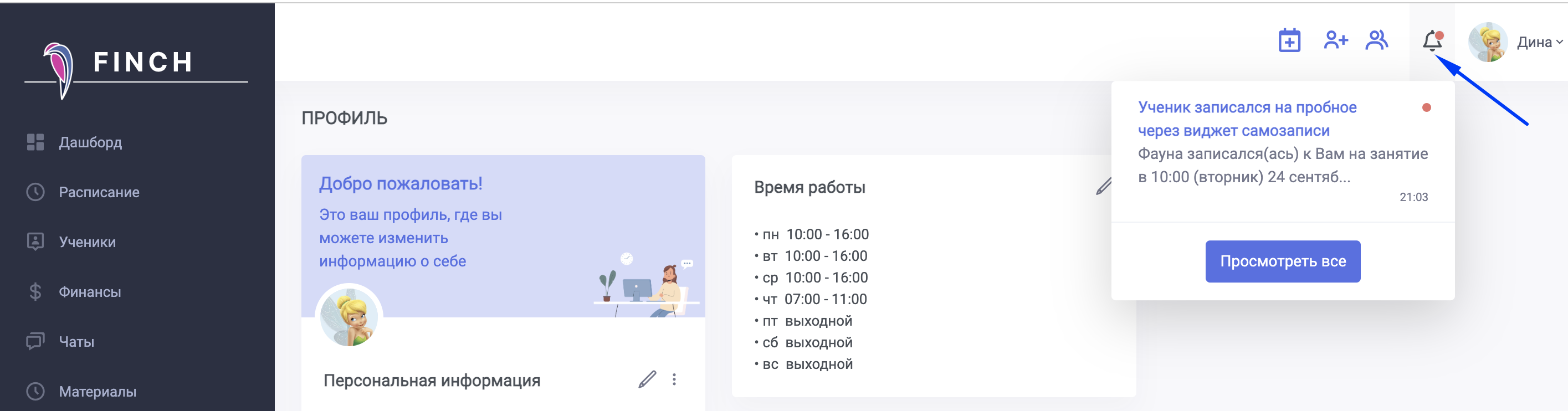 Вам поступит уведомление в Finch о новом ученике.