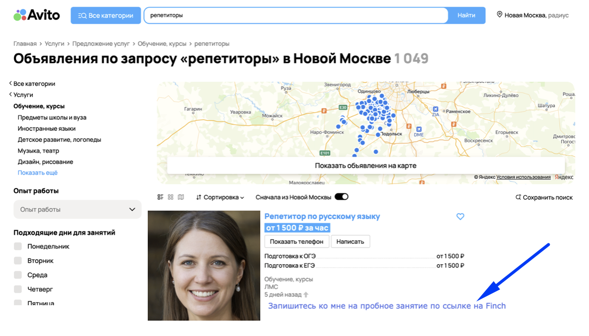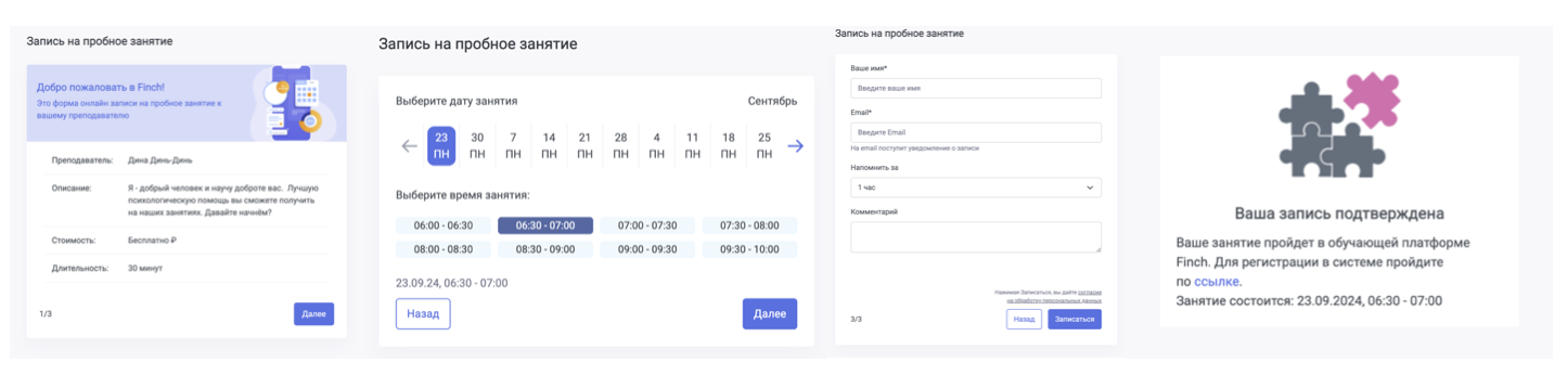 , то перейдя по ссылке, увидят информацию о пробном занятии, репетиторе, выберут удобное время по вашему расписанию и запишутся. За установленное время до занятия придёт напоминание.